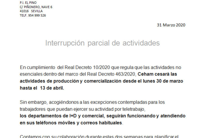 Estimados Señores, Nos dirigimos a ustedes con el fin de informarles con tiempo suficiente de nuestro periodo vacacional de diciembre de 2020 y enero de 2021. Dias de cierre: – 21 a 23 de diciembre: Horario de 08:00h a 14:00h – 24 de diciembre de 2020: cerrado – 28 a 30 de diciembre: horario de…